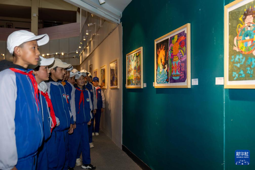 5月20日,在西藏自治區(qū)群藝館,觀眾在啟動儀式上參觀中學生繪畫作品展。新華社記者 旦增尼瑪曲珠 攝