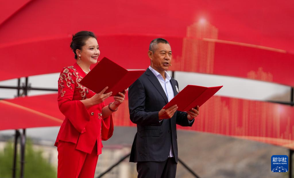 5月25日,王喆(左)和次仁央宗為觀眾演唱歌曲。新華社記者 晉美多吉 攝