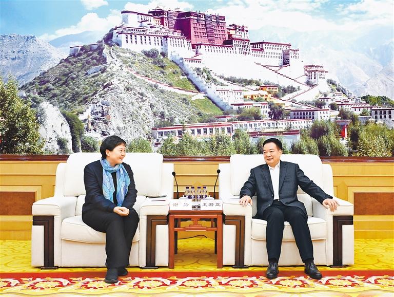 王君正指出,西藏文化是中華文化的重要組成部分,為豐富和塑造中華文化作出了積極貢獻(xiàn)。自治區(qū)黨委高度重視文化事業(yè)發(fā)展,不斷深化文化體制機(jī)制改革,積極推動(dòng)優(yōu)質(zhì)文化資源直達(dá)基層,讓人民共享文化發(fā)展成果,文化建設(shè)迎來新的發(fā)展機(jī)遇。我們要深入貫徹落實(shí)習(xí)近平文化思想,自覺承擔(dān)起舉旗幟、聚民心、育新人、興文化、展形象的使命任務(wù),積極推進(jìn)文化事業(yè)和文化產(chǎn)業(yè)繁榮發(fā)展,深入開展文藝主題創(chuàng)作和文化產(chǎn)品創(chuàng)新,共同推動(dòng)文化強(qiáng)區(qū)建設(shè)。希望中國(guó)文聯(lián)加大工作力度,立足西藏文化事業(yè)發(fā)展實(shí)際,發(fā)揮自身優(yōu)勢(shì),多提寶貴意見,在推動(dòng)西藏文化宣傳推介和文藝創(chuàng)作、文化惠民、人才培養(yǎng)等方面給予更多支持,用優(yōu)秀的文藝作品展現(xiàn)習(xí)近平總書記和黨中央對(duì)西藏各族人民的關(guān)心關(guān)懷,用群眾喜聞樂見的文藝形式展示西藏經(jīng)濟(jì)社會(huì)發(fā)展取得的巨大成就,唱響主旋律、弘揚(yáng)正能量,助推西藏長(zhǎng)治久安和高質(zhì)量發(fā)展。