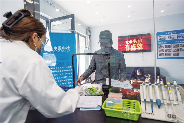 市民前來(lái)檢測(cè)站送檢驗(yàn)樣品。