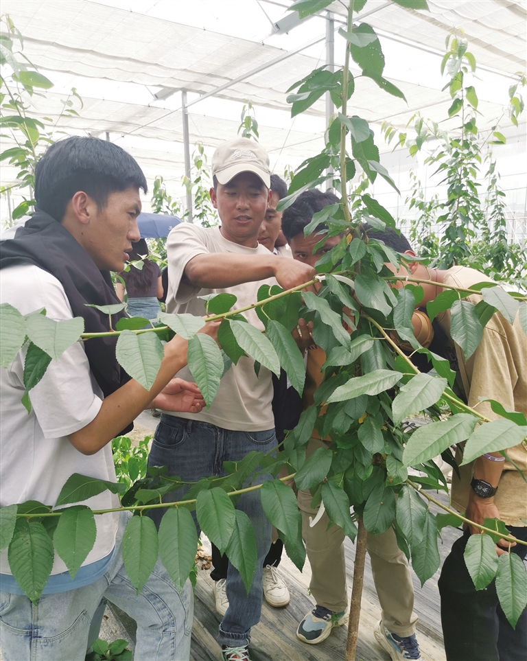 那段時間,他查閱了大量資料,進行了多次實地調(diào)研,提出了引進山東、陜西等地品質(zhì)高、產(chǎn)量好且抗病蟲害果樹的想法。他解釋道:“引進這些品種,一方面可以大大降低病蟲害的風險,提高產(chǎn)量和品質(zhì)。另一方面,通過研究水果本身的生長規(guī)律,選擇不同的品種進行合理配置,能達到相互促進的效果?!苯?jīng)過一段時間的試種,格桑群培的想法取得了顯著成效,得到了大家的高度贊譽。