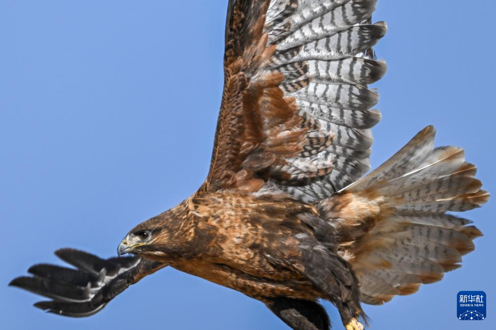 一只大鵟在羌塘草原展翅飛翔(6月8日攝)。新華社記者 劉金海 攝