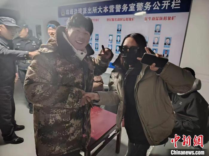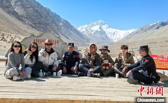 圖為民警與因“打卡”拍照起糾紛的游客圍坐調(diào)解后合影。 珠峰邊境派出所供圖