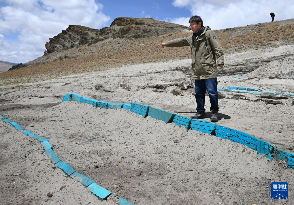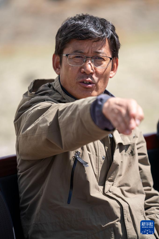 5月22日,聯(lián)合考古隊領隊夏格旺堆在瑪不錯遺址向記者介紹考古發(fā)掘情況。新華社記者 旦增尼瑪曲珠 攝