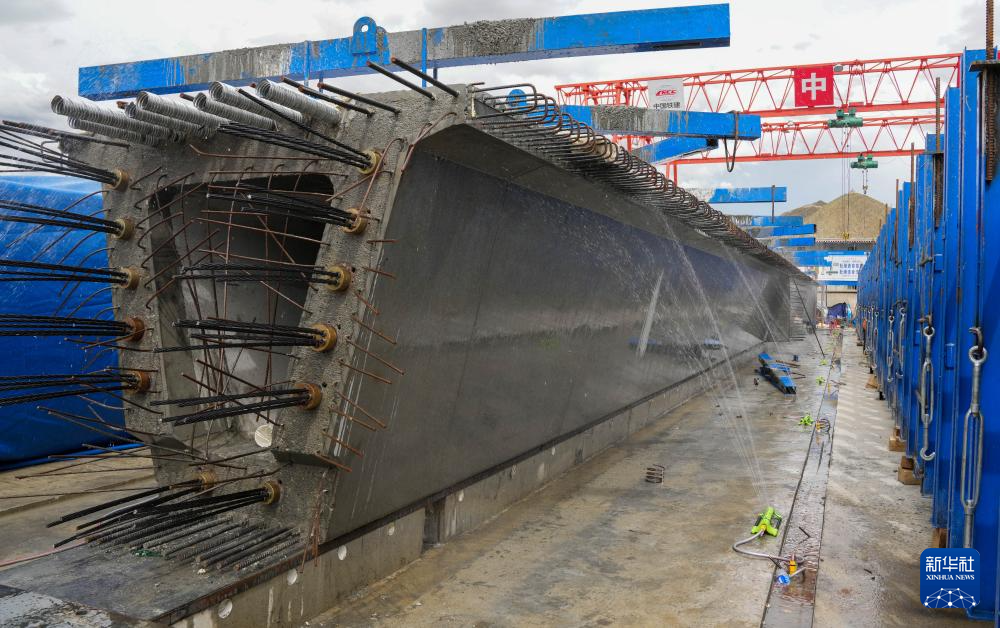 6月18日拍攝的薩熱路跨江大橋箱梁。新華社記者 晉美多吉 攝