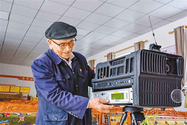 “電影放完了,大家都還舍不得走,有些村民開(kāi)玩笑,假意不讓我?guī)ё叻庞硻C(jī),請(qǐng)求我放第二場(chǎng)、第三場(chǎng)。他們喜歡看,我也樂(lè)意放,多的時(shí)候,一天要連續(xù)放四場(chǎng)。其中最受歡迎的就屬《南征北戰(zhàn)》《戰(zhàn)上?!愤@類(lèi)戰(zhàn)斗片、抗戰(zhàn)片了?!闭f(shuō)話間,仁真平措黝黑的臉頰紅暈泛開(kāi)來(lái),笑容里滿是對(duì)往昔的回憶。