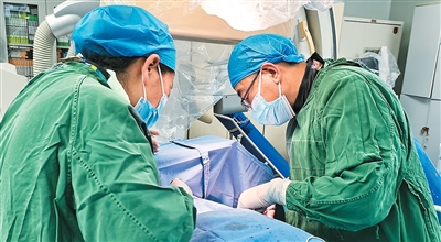 達娃次仁(右一)正在做起搏器植入術(shù)。西藏自治區(qū)人民醫(yī)院供圖