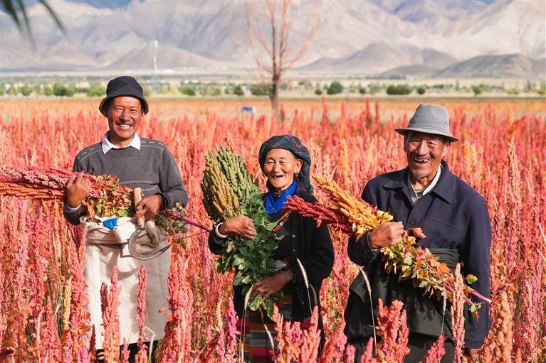 上海市援藏重點項目——薩迦縣高原藜麥種植農(nóng)戶喜獲藜麥豐收。