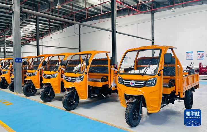 6月8日,西藏吉隆瑞尼機(jī)械制造有限公司倉庫內(nèi)等待出口的三輪車。新華社記者蔣夢辰 攝