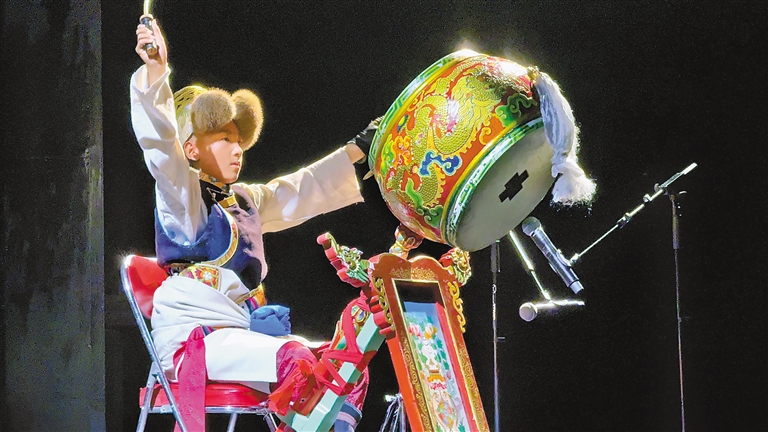 扎西多吉從小學一年級起便跟隨老師學藝,憑借扎實功底曾在“中國少兒戲曲小梅花薈萃”活動中獲得“小梅花”稱號?!八竟氖遣貞虻撵`魂節(jié)奏,每一次擊打都要帶著對傳統(tǒng)文化的敬意。”這位14歲少年的專注與執(zhí)著,不僅收獲了藝術(shù)成就,更錘煉出沉穩(wěn)大氣的品格。母親措姆欣慰地表示:“看著孩子在藏戲?qū)W習中成長,是最幸福的事。”