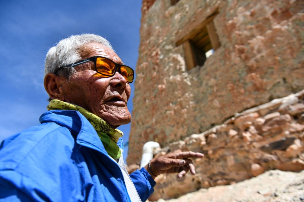 今年77歲的仁增旺扎家住西藏阿里地區(qū)札達(dá)縣東嘎村皮央組。他的家與宏偉壯觀的皮央石窟僅咫尺之遙,民居依偎在高聳的石窟群之下,形成了強(qiáng)烈的視覺落差。皮央石窟群與兩公里外的東嘎扎西曲林寺遺址一起組成了西藏最大的佛教石窟遺址——皮央和東嘎石窟遺址。