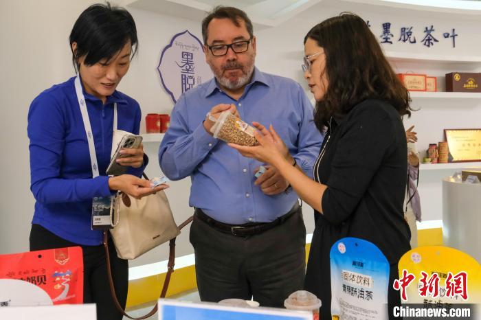 圖為6月28日,智利駐華大使巴勃羅·阿里亞蘭(中)在林芝經(jīng)濟(jì)開(kāi)發(fā)區(qū)參訪(fǎng)時(shí)品嘗青稞食品。中新社記者 江飛波 攝