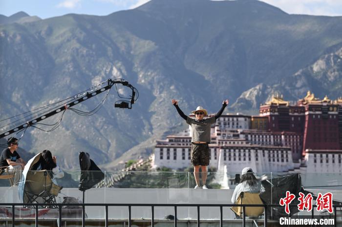 7月7日,游客在西藏拉薩市的一家景觀咖啡廳拍攝以布達拉宮為背景的 “旱地拔蔥” ?!昂档匕问[” 式的創(chuàng)意拍攝在拉薩掀起打卡熱潮。游客借助搖臂攝像機,高高躍起,與雄偉的布達拉宮同框,拍出極具視覺沖擊力的“電影級”大片。據(jù)悉,拍攝“旱地拔蔥”的景觀咖啡廳從今年5月開業(yè)以來,平均每天接待游客300到500人次。中新社記者 貢嘎來松 攝
