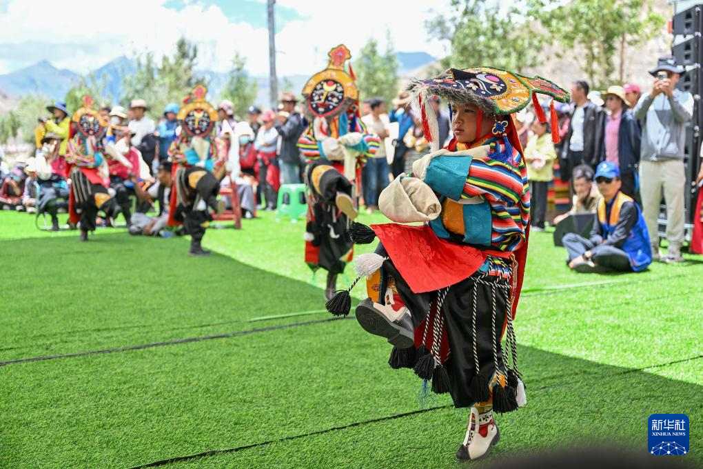 7月16日,民間藏戲表演隊(duì)在南木林縣非遺公園內(nèi)表演湘巴藏戲。新華社記者 李鑫 攝