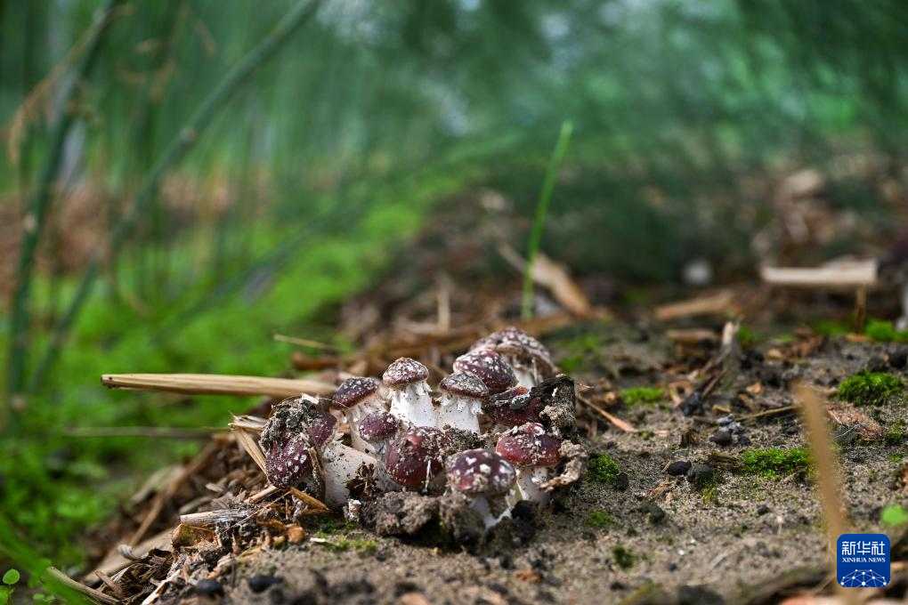 這是西藏扎囊縣綠之源現(xiàn)代農(nóng)業(yè)科技股份有限公司有機(jī)蘆筍大棚內(nèi)發(fā)展“蘆筍林下經(jīng)濟(jì)”試種成功的赤松茸(7月19日攝)。新華社記者 李鑫 攝
