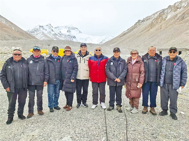 2025年5月6日,登山勇士們參加紀(jì)念中國人再登珠穆朗瑪峰50周年系列活動之“登山勇士緬懷活動”時合影。記者 鄭璐 攝(除本圖外的其他圖片均由西藏自治區(qū)登山隊提供)
