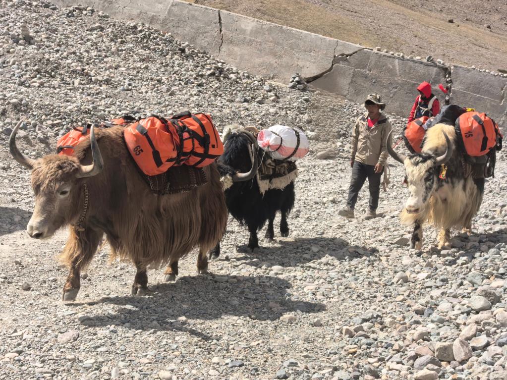 在徒步路線的起點廣場上,一隊隊牦牛隊整裝待發(fā),游客的行李正被穩(wěn)穩(wěn)地放上牛背。不少外籍游客雇傭本地牧民,利用牦牛馱運行李并提供向?qū)Х?wù)。陳賢剛介紹,旅游業(yè)已成為巴嘎鎮(zhèn)經(jīng)濟的主導(dǎo)產(chǎn)業(yè),當(dāng)?shù)鼐用袷杖胫屑s一半來自旅游相關(guān)工作。