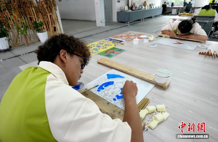 8月6日,拉薩市蓮華之寶中華藏瓷文化旅游體驗園景區(qū)里,工作人員正在陶瓷繪畫。蓮華之寶中華藏瓷文化旅游體驗園景區(qū)集展覽、銷售與文化體驗于一體,通過與高校開展校企合作等方式,將唐卡繪畫藝術(shù)與陶瓷工藝結(jié)合,傳播優(yōu)秀傳統(tǒng)文化。中新社記者 李林 攝