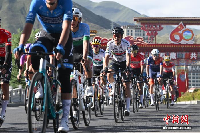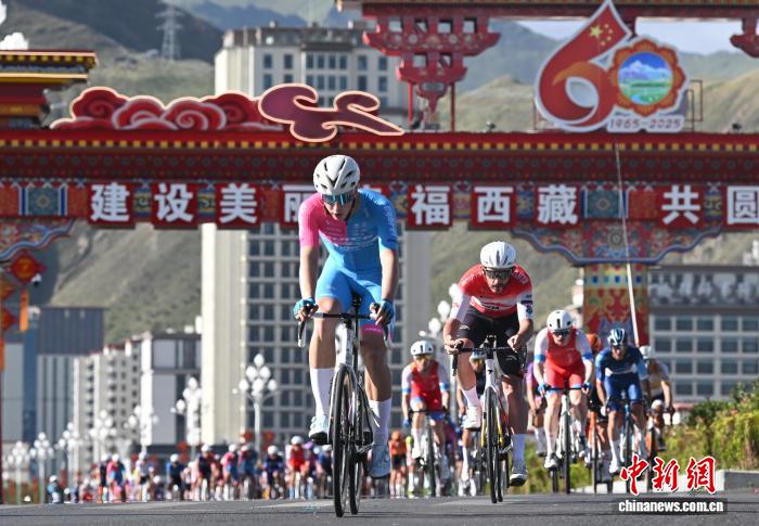 8月9日,2025中國西藏第六屆跨喜馬拉雅國際公路自行車極限賽拉薩賽段(第三賽段)完賽。本賽段為拉薩繞圈賽,起點(diǎn)拉薩市西藏博物館,終點(diǎn)布達(dá)拉宮廣場(chǎng),全程約92.53公里。圖為參賽車手在比賽中。中新社記者 貢嘎來松 攝