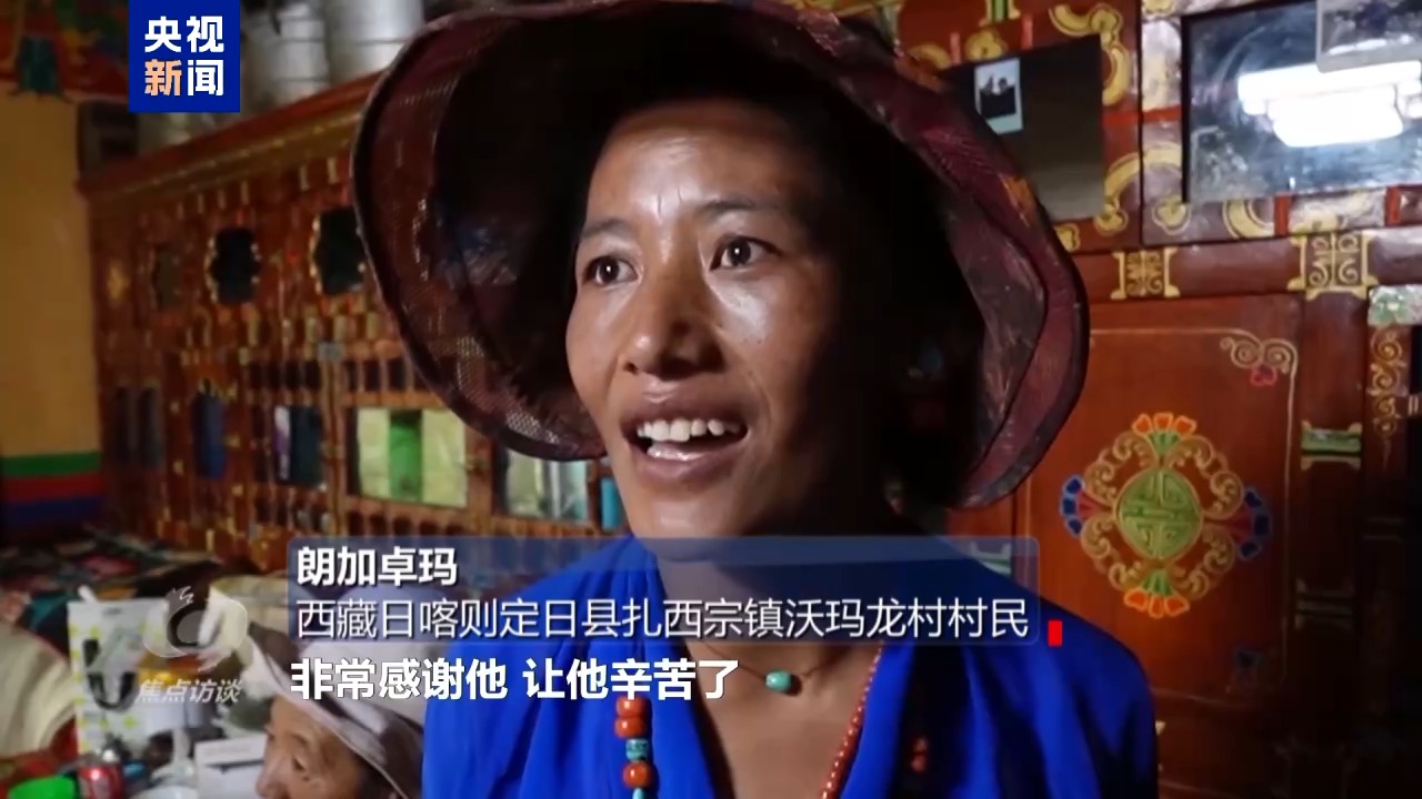 西藏日喀則定日縣扎西宗鎮(zhèn)沃瑪龍村村民 朗加卓瑪:獻(xiàn)給援藏的縣長,非常感謝他,他辛苦了。