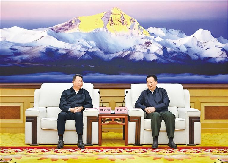 王君正代表自治區(qū)黨委、政府向郭元強一行表示歡迎,并簡要介紹了西藏經(jīng)濟社會發(fā)展情況。他說,黨的十八大以來,以習近平同志為核心的黨中央高度重視西藏工作,習近平總書記多次作出重要指示批示,確立了新時代黨的治藏方略,明確了“穩(wěn)定、發(fā)展、生態(tài)、強邊”四件大事,提出了長治久安和高質(zhì)量發(fā)展的戰(zhàn)略目標,為我們做好西藏工作指明了前進方向、提供了根本遵循。自治區(qū)黨委團結(jié)帶領(lǐng)全區(qū)各族干部群眾,深入貫徹習近平總書記關(guān)于西藏工作的重要指示和新時代黨的治藏方略,持之以恒抓好“四件大事”落實,推動各項事業(yè)不斷取得新成效。