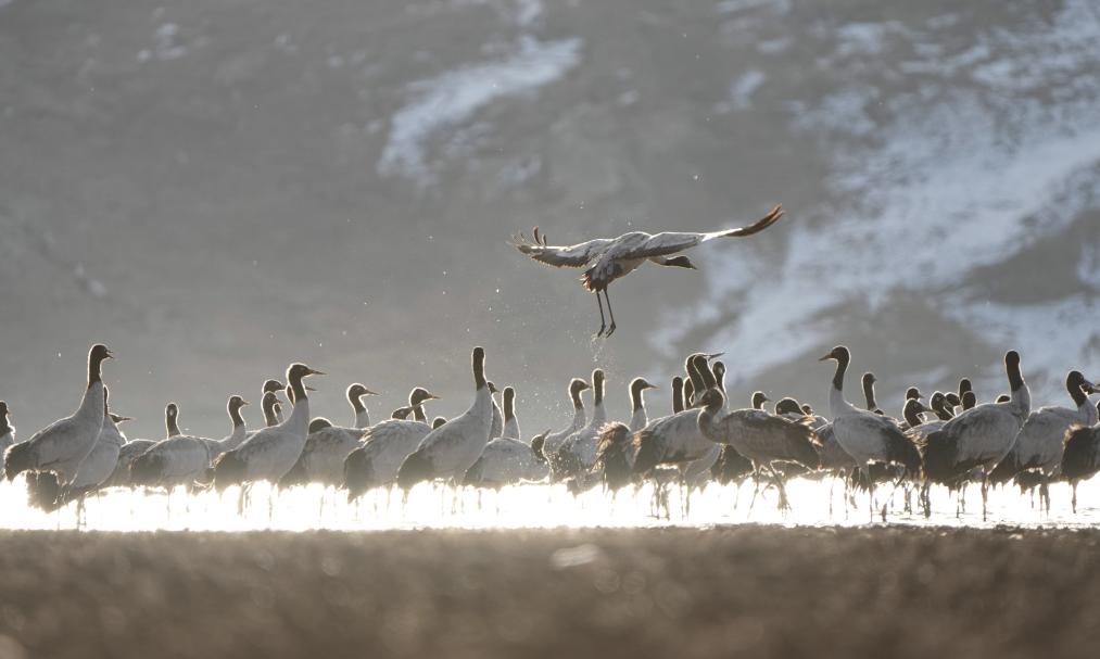 黑頸鶴主要棲息在高原海拔2500米至5000米的草甸、沼澤地帶,是世界上唯一生長、繁殖在高原的鶴類,也是國家一級保護(hù)動物,有“高原仙子”的美稱。每年3月中下旬,黑頸鶴向北方各繁殖地遷徙;10月,開始結(jié)群帶領(lǐng)幼鳥南遷至西藏林周等地越冬。