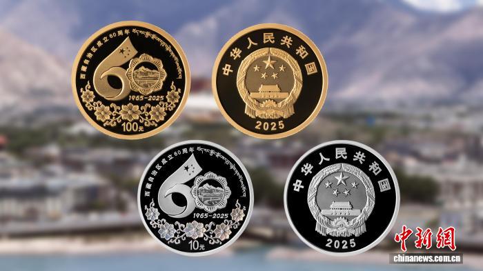 圖為西藏自治區(qū)成立60周年金銀紀(jì)念幣樣式。中國人民銀行西藏分行供圖