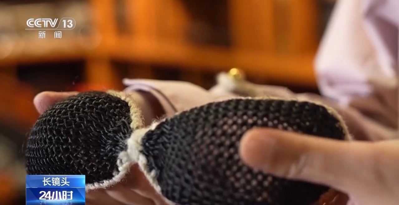 總臺(tái)記者發(fā)現(xiàn)了一副用牦牛毛編織的墨鏡。以前牧民非常有智慧,他們?cè)谘┨鞎?huì)帶上牦牛毛編織的墨鏡,防止白雪刺眼。記者戴上之后,可以非常清楚地看到遠(yuǎn)方。