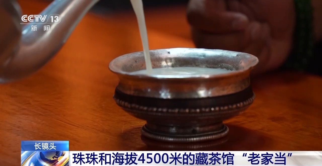 在帶記者欣賞民俗物品、觸摸歷史的同時(shí),珠珠也邀請(qǐng)記者像藏族同胞一樣,喝上一杯熱騰騰的酥油茶。