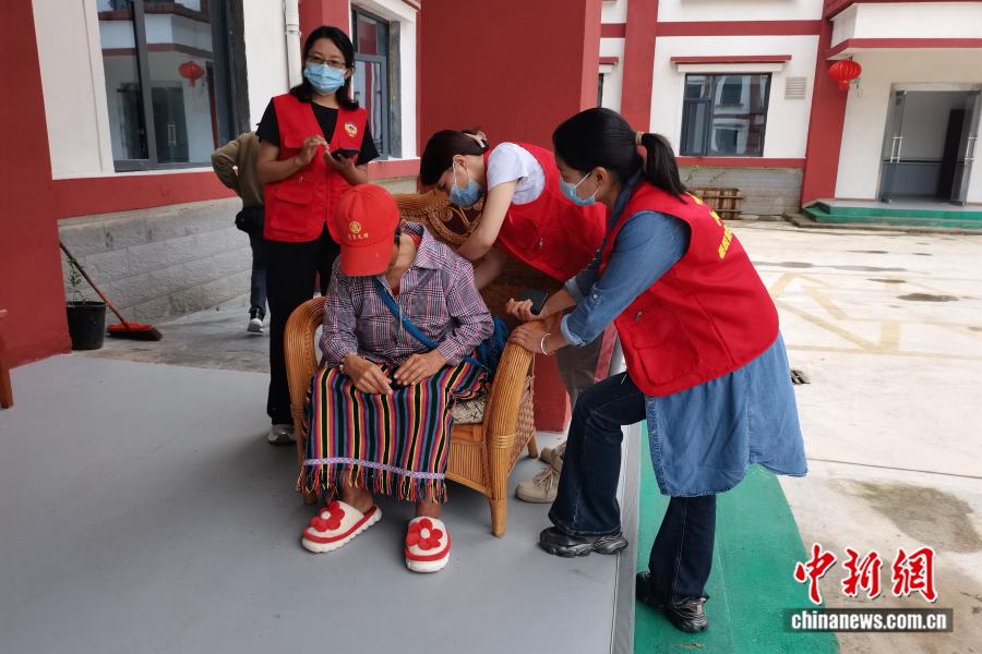 2025年5月23日,墨脫縣政協(xié)辦黨支部黨員干部與政協(xié)委員代表前往墨脫縣一家養(yǎng)老院開展活動。圖為黃小芳(右二)為行動不便老人按摩捶背。受訪者供圖