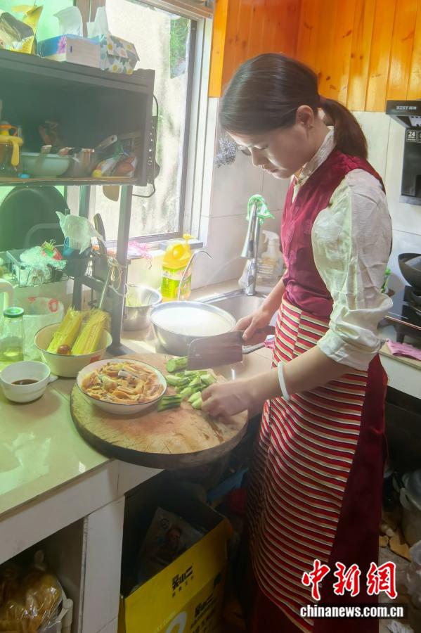 這種交融,也悄然浸潤著兩個女兒的成長。家里的餐桌永遠擺著酥油茶和豆?jié){,藏裝與漢服常一起晾在陽臺。藏歷新年,丈夫教女兒插青稞穗;春節(jié),她帶女兒貼春聯(lián)。幼兒園讓畫“最喜歡的場景”時,大女兒畫了一群不同民族的孩子圍著石榴樹拉手笑:“這是墨脫,我們都是一家人,像石榴籽一樣!”