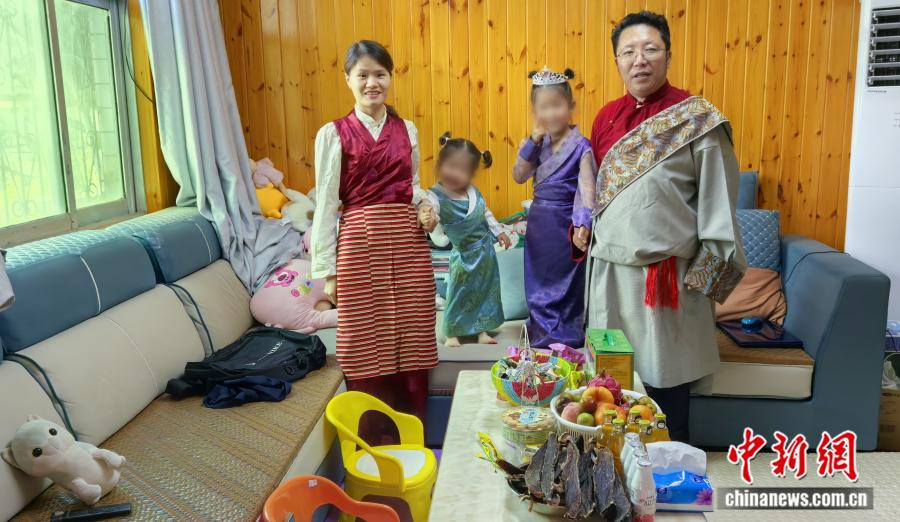 黃小芳一家人共同慶祝藏族傳統(tǒng)節(jié)日。 受訪者供圖