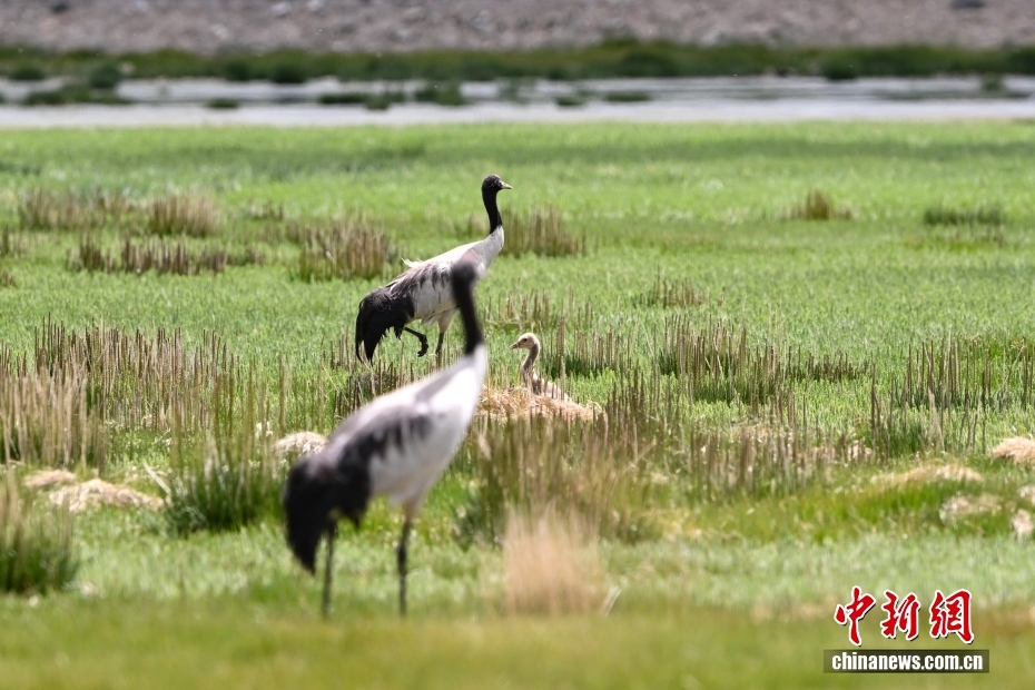在海拔4700米的西藏自治區(qū)那曲市申扎縣濕地里,黑頸鶴一家在悠閑覓食。黑頸鶴是中國國家一級重點保護野生動物,屬高原特有鶴類,主要棲息于海拔2500米至5000米的高原沼澤地、湖泊及河灘等濕地環(huán)境。每年四月起,成對的黑頸鶴陸續(xù)飛抵西藏自治區(qū)那曲市申扎縣,在此繁育后代。中新社記者 貢嘎來松 攝