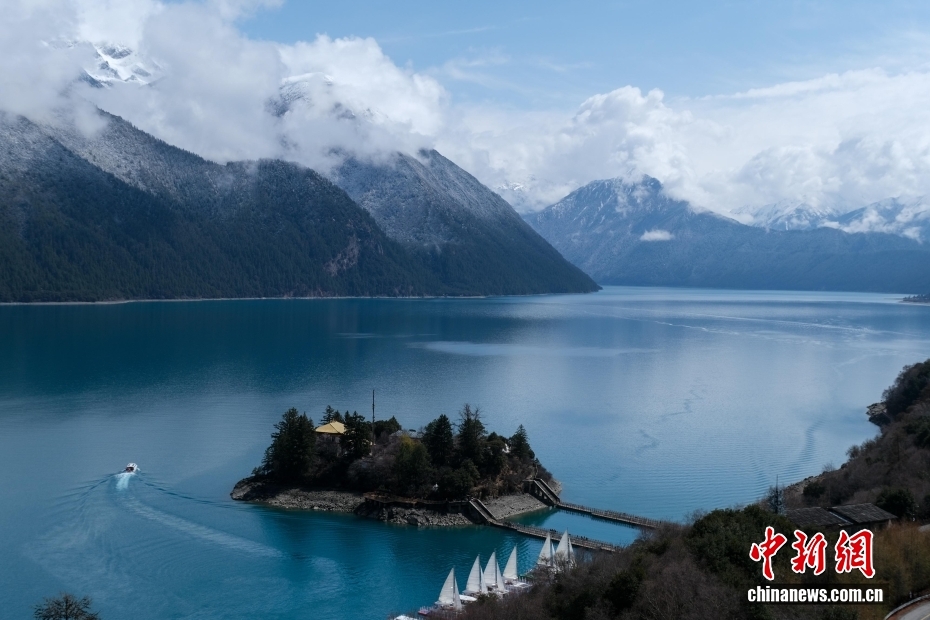 位于西藏林芝的巴松錯迎來一場春雪,雪后風光如畫。圖為巴松錯與遠處的雪山風光。中新社記者 江飛波 攝