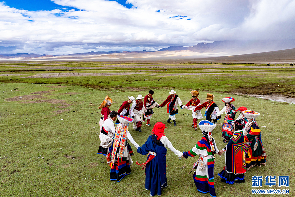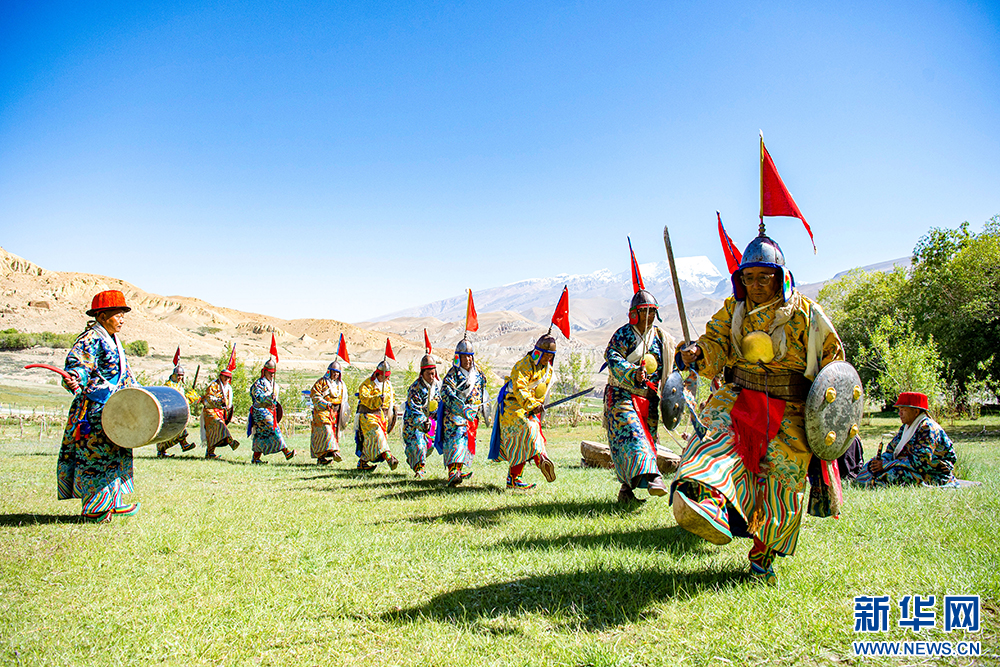 普蘭縣西德村村民在表演“果爾孜舞”(6月10日攝)。“果爾孜舞”有1300多年的歷史,傳承沿襲傳統(tǒng)的口口相傳。2011年,被列入國家級非物質文化遺產名錄。新華網 旦增努布 攝