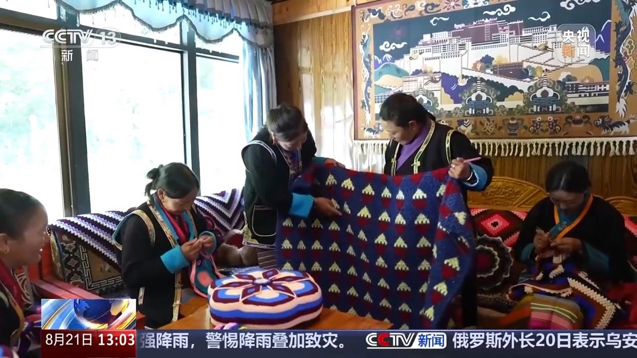 西藏自治區(qū)山南市隆子縣珞瓦新村村民 次仁卓瑪:今年以來(lái),我們已經(jīng)賣(mài)出了50多條毛毯,100多個(gè)靠枕,其中一半是通過(guò)網(wǎng)絡(luò)直播賣(mài)出的。