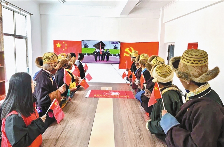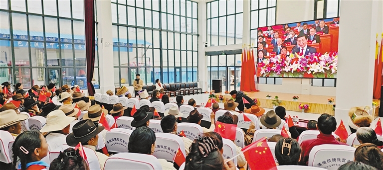 日喀則市謝通門(mén)縣仁欽則鄉(xiāng)倫珠孜村的村民們集中觀看了現(xiàn)場(chǎng)直播,現(xiàn)場(chǎng)不時(shí)傳出熱烈掌聲。老黨員仁增多吉感慨萬(wàn)千:“我深切體會(huì)到了沒(méi)有中國(guó)共產(chǎn)黨就沒(méi)有社會(huì)主義新西藏,就沒(méi)有我們今天的幸福生活。我將始終維護(hù)祖國(guó)統(tǒng)一,加強(qiáng)民族團(tuán)結(jié),堅(jiān)定不移聽(tīng)黨話、矢志不渝跟黨走?!?/p>