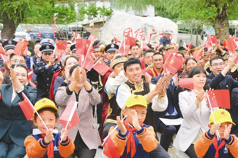 山南市隆子縣玉麥鄉(xiāng)干部群眾、派出所民警等來(lái)到愛(ài)國(guó)守邊先進(jìn)事跡展館,集中收聽(tīng)收看了慶祝大會(huì)直播。玉麥村的大學(xué)生尼瑪次仁說(shuō):“當(dāng)看到山南彩車上‘家是玉麥,國(guó)是中國(guó)’的標(biāo)語(yǔ)時(shí),我感到非常驕傲與自豪。作為新時(shí)代青年,我要傳承好發(fā)揚(yáng)好愛(ài)國(guó)守邊精神,時(shí)刻準(zhǔn)備著到祖國(guó)和人民最需要的地方去。”