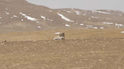 羌塘國家級(jí)自然保護(hù)區(qū)核心區(qū)中的野狼和已經(jīng)死去的母羊。