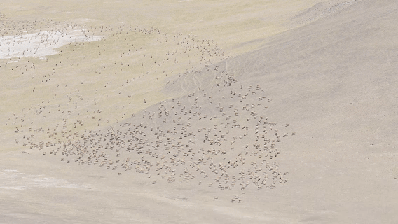 在這段來時(shí)無比顛簸的路上,我們?nèi)缏钠降亍r(shí)間好像凍結(jié)了,直到我們登上那個(gè)山坡,數(shù)不盡的藏羚羊挑破了凝固的空氣,成千上萬的脊背在山坡上流動(dòng),山脊上藏羚羊的剪影印刻在天際線上。