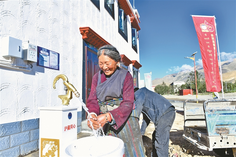 8月7日,拉姆一家分到一棟110平方米的新房。當(dāng)她擰開锃亮的水龍頭,熱水涌出的瞬間,淚水奪眶而出:“以前兒子沒法在家里洗澡,現(xiàn)在能了,特別開心?!边@簡(jiǎn)單的心聲,道出森嘎村600多名村民共同的喜悅。