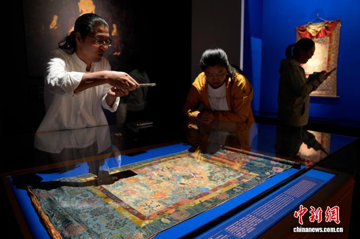圖為觀眾拍攝展覽中的唐卡。李林 攝