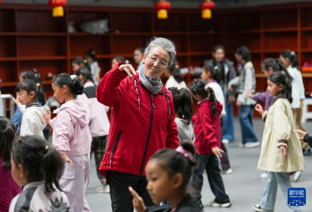 9月14日,巴桑老師在西藏自治區(qū)群藝館帶領孩子們學習藏戲表演。新華社記者 晉美多吉 攝