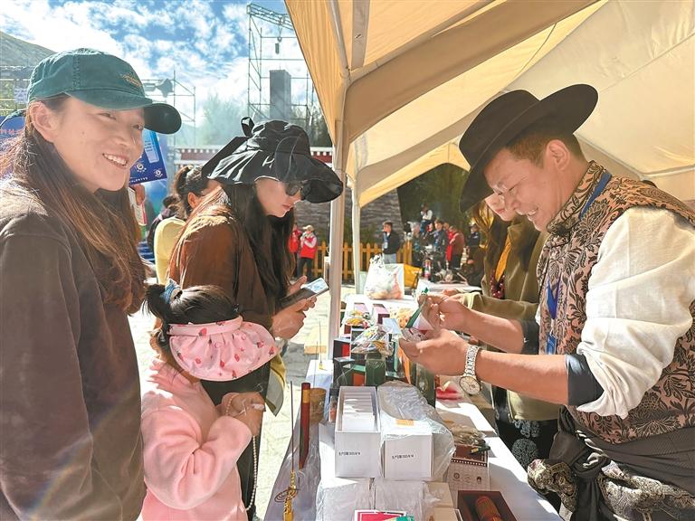 “今天我們帶來了6種藏香文創(chuàng)產(chǎn)品,分別有安神、提神、清潔空氣等系列,這些年我們除了在線下銷售,還要感謝尼木縣委、縣政府積極與線上各大平臺(tái)接洽,讓我們的藏香通過線上銷售,走出了尼木,讓北京、南京、天津等城市的客戶通過線上購買。所有藏香都是由縣委、縣政府組織的易地搬遷戶制作,這讓不少群眾不僅能就近就業(yè),還能照顧家里。特別感謝黨和政府對(duì)藏香保護(hù)和發(fā)展所做的各項(xiàng)工作。”縣級(jí)非物質(zhì)文化遺產(chǎn)傳承人洛桑旺堆在活動(dòng)現(xiàn)場(chǎng)說。
