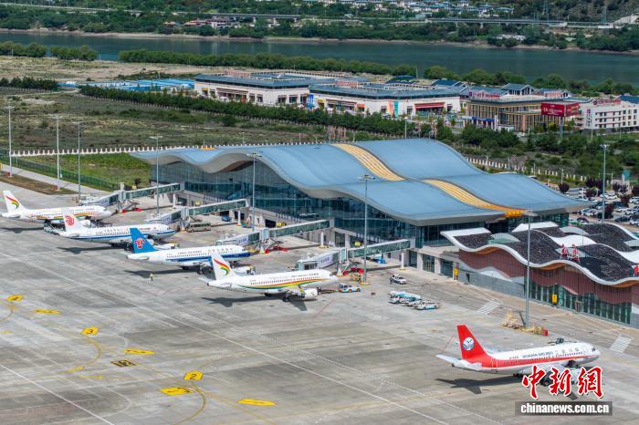 2025年6月,西藏林芝米林機場停靠航班。該機場現(xiàn)運營15條航線,通達北京、成都及廣州等9座城市。(中國民用航空西藏自治區(qū)管理局供圖)