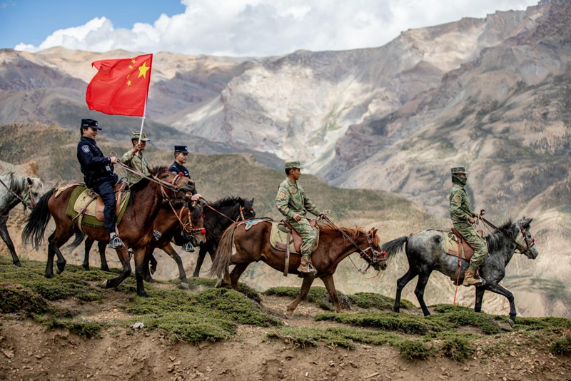 更艱險的巡邊路,隱沒在海拔5000米的峭壁之上。民警、戰(zhàn)士與村民騎著馬,在絕壁間逶迤前行,落石與暗冰隨時可能出現(xiàn)。次仁多布杰輕撫馬鬃,聲音如雪山般沉穩(wěn):“我父親的父親的父親就在這里出生,這里必須有人守。我住,我的孩子也要??!若無人守邊,何人護(hù)國?”作為受人尊敬的村醫(yī),他本可退休進(jìn)城,安享優(yōu)渥。但他依然選擇守護(hù)這片土地。