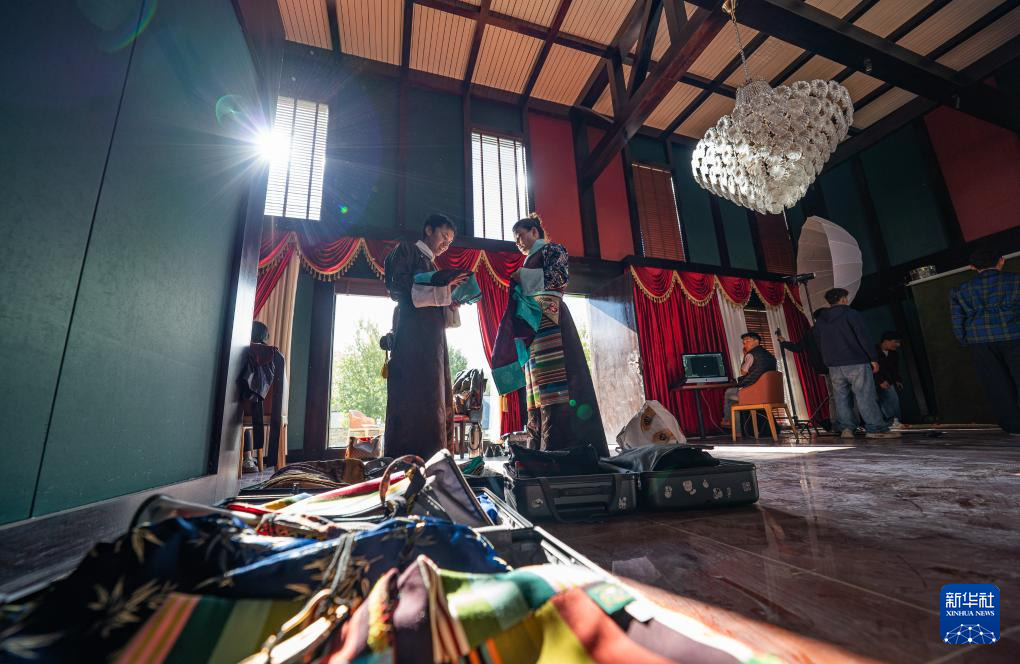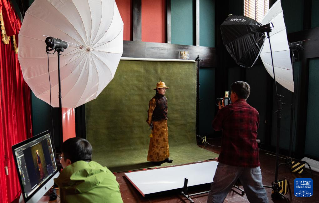 班珠丹塔身著藏裝進(jìn)行棚拍(9月9日攝)。新華社記者 丁增尼達(dá) 攝??