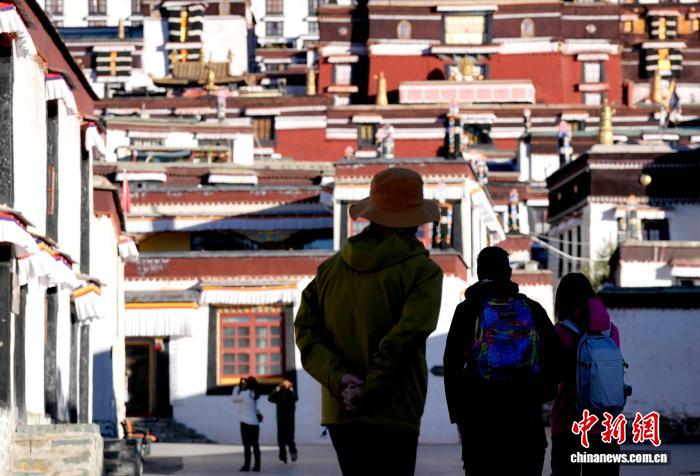 10月7日,外國(guó)游客在西藏日喀則市扎什倫布寺參觀。扎什倫布寺始建于公元1447年,是中國(guó)國(guó)家5A級(jí)旅游景區(qū)。憑借深厚的歷史底蘊(yùn)和獨(dú)特的文化魅力,吸引眾多中外游客參觀游覽。中新社記者 李林 攝