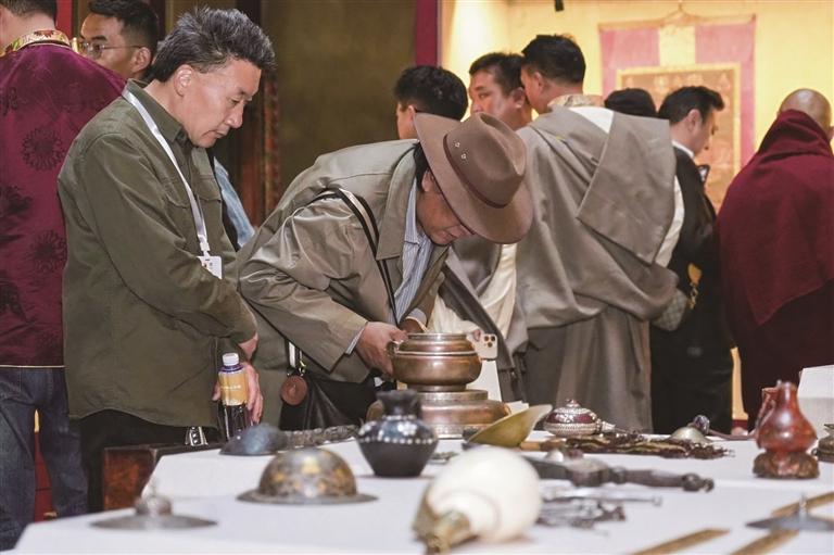 活動現(xiàn)場,近千名國內(nèi)外古物藏家、文博專家與市民游客齊聚,共同開啟這場跨越歷史與現(xiàn)代的文化盛宴。記者了解到,本次活動以“展覽、講座、集市、拍賣”四大板塊為核心,構(gòu)建起多層次的文化交流平臺。在展覽區(qū),大家可沉浸式感受古物的歲月沉淀;專業(yè)講座將邀請行業(yè)專家講解收藏知識,為藏家答疑解惑;集市板塊為供需雙方搭建直接對接的橋梁,滿足不同群體的收藏需求;而拍賣環(huán)節(jié)則將呈現(xiàn)精品對決,讓珍貴藏品找到心儀歸宿。西藏唐卡藝術(shù)博物館運(yùn)營方、西藏博秀嘎瑪實(shí)業(yè)有限公司董事長根秋扎西介紹,值得一提的是本次拍賣為慈善拍賣,拍賣所得將全部用于支持西藏文化藝術(shù)發(fā)展。