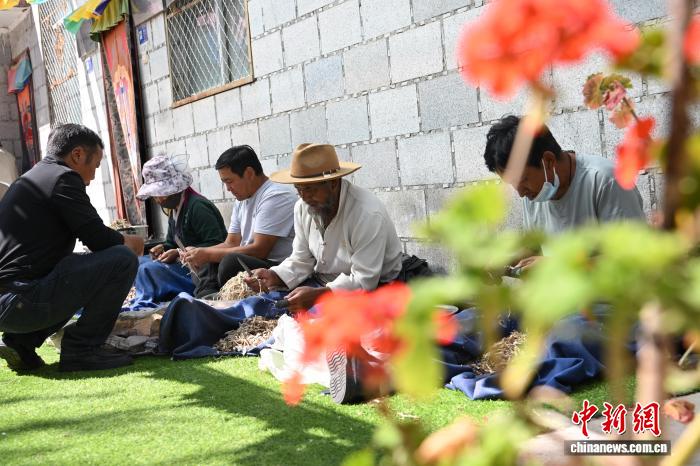 圖為雪拉村村民在給狼毒草根去皮。中新社記者 貢嘎來(lái)松 攝